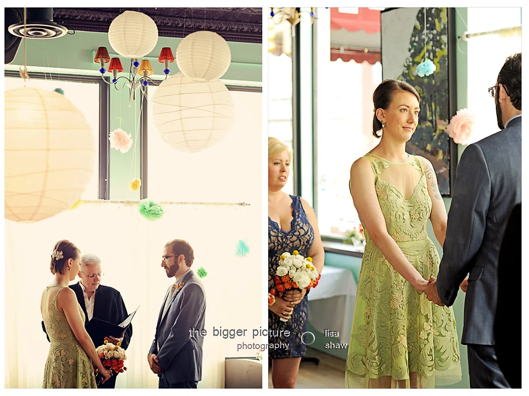 The wedding day was such an bright, intimate affair. It was the first wedding that Sanchez has hosted in their newly redecorated venue space for events. Friends and family sipped cocktails and chatted about for hours. It resembled the couple's personalities, as it was cozy, laid back, cool, and fun.